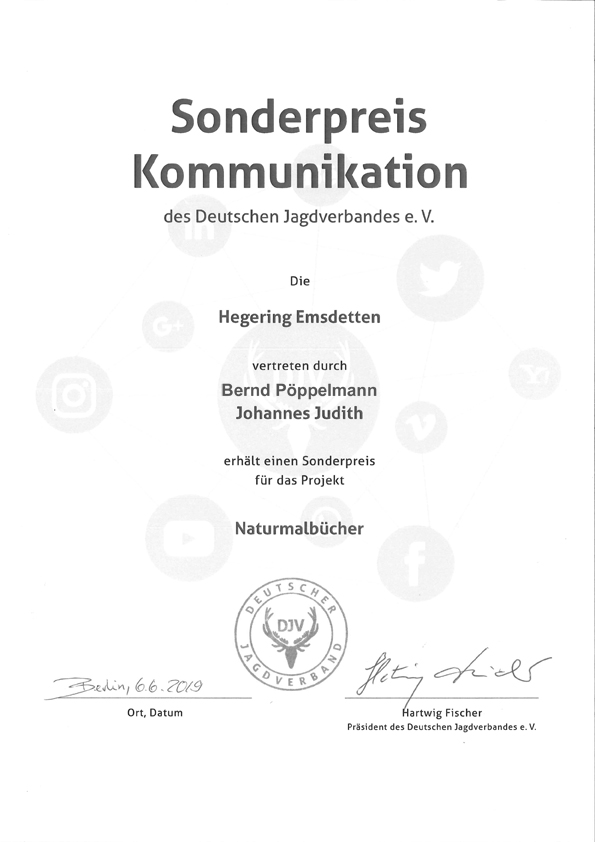 Regional wurde er bereits 1992 mit dem Umweltpreis der Stadt Emsdetten ausgezeichnet, 2019 erhielt er für die Malbücher den Sonderpreis Kommunikation 2019 des Deutschen Jagd Verbandes.